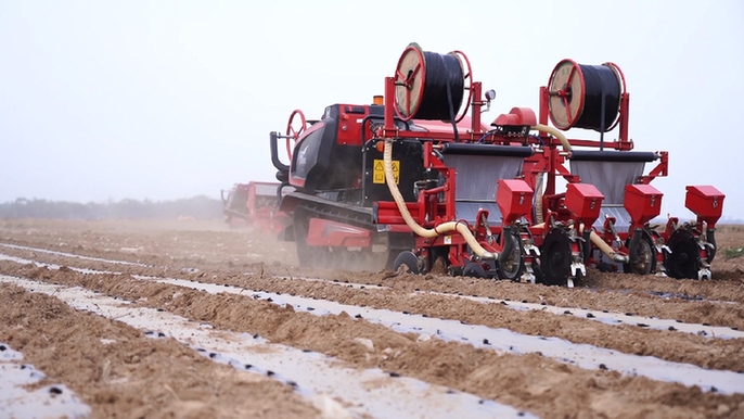 標(biāo)準(zhǔn)化的播種為后續(xù)管理提供了便利?!安シN的質(zhì)量、深度、行距和直線距離都非常標(biāo)準(zhǔn),這樣后期管理和收獲時都可以使用標(biāo)準(zhǔn)化的機械,形成從種植到管理到收獲一條龍機械化操作,預(yù)計整個管理期節(jié)約人工60%以上?!眹姨厣卟水a(chǎn)業(yè)體系德州市綜合實驗站站長、德州市農(nóng)科院副院長張自坤介紹,直播機在播種的同時還能進行起壟、打孔、覆膜、鋪設(shè)滴灌帶等工作,方便后期的水肥管理,實現(xiàn)節(jié)水節(jié)肥。