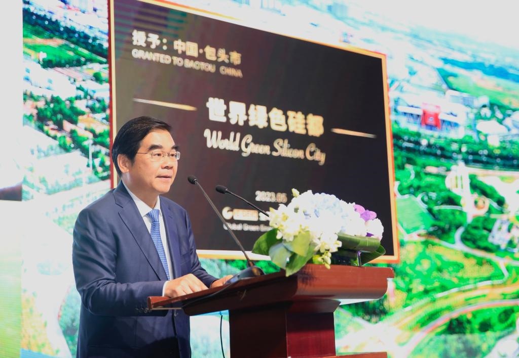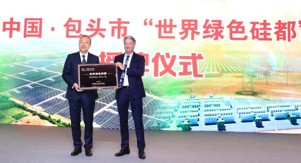 新華網(wǎng)呼和浩特5月23日電(記者賈立君、安路蒙)23日,在上海召開的第十六屆(2023)國(guó)際太陽(yáng)能光伏與智慧能源大會(huì)上,全球綠色能源理事會(huì)授予內(nèi)蒙古自治區(qū)包頭市“世界綠色硅都”稱號(hào)。