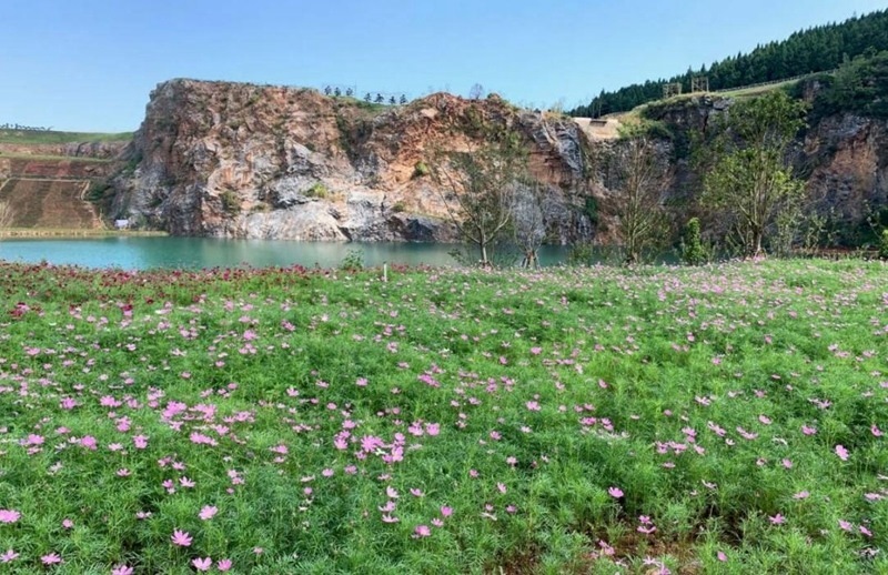 靈山生態(tài)文化旅游區(qū)已打造出繽紛的山林景觀。景區(qū)內,金色梯田美不勝收,拾階而上,高山草甸順著山勢起伏;一棵“孤獨的樹”矗立山巔,俯瞰遠處的油菜花海、采礦舊址;穿越千株櫻園、桃林蜿蜒直達谷底,“礦坑花園”已成為絕佳的拍照打卡地。