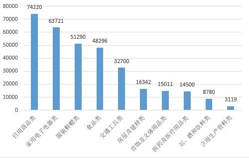 圖4商品細分領(lǐng)域投訴前十位(單位:件)