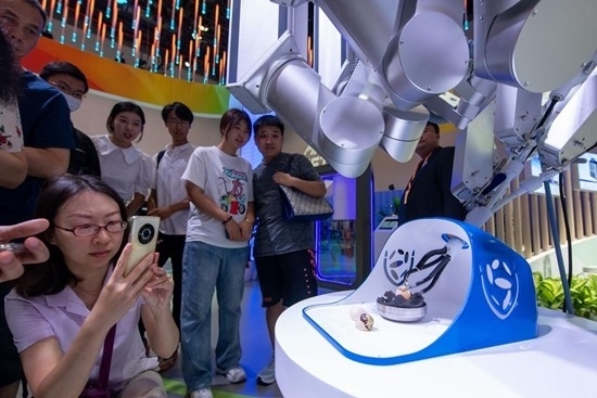 9月2日,在服務(wù)貿(mào)易及服務(wù)業(yè)擴(kuò)大開(kāi)放成就展上,手術(shù)機(jī)器人吸引了眾多觀眾駐足。人民網(wǎng)記者 翁奇羽攝