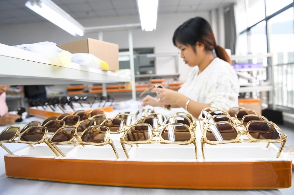 奉節(jié)縣生態(tài)工業(yè)園區(qū)一家眼鏡生產企業(yè)的工作人員在工作。新華社記者王全超 攝
