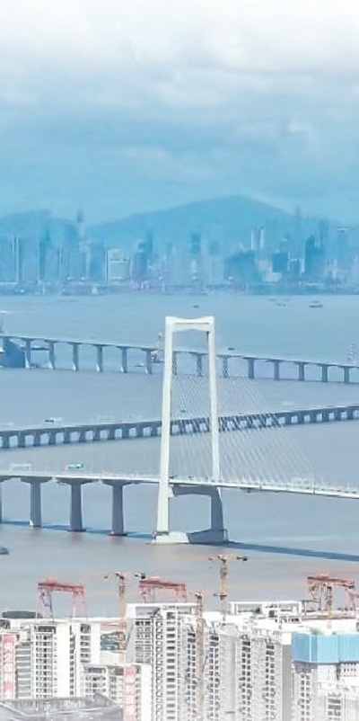 伶仃洋上壯觀的深中通道。付海燕攝(人民視覺)
