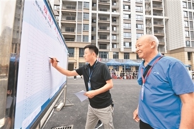 近年來(lái),湖北省襄陽(yáng)市保康縣持續(xù)改善城市人居環(huán)境、提升城市功能與品位,讓群眾住有所居、安居宜居的夢(mèng)想不斷成為美好現(xiàn)實(shí)。圖為保康縣新型城鎮(zhèn)化項(xiàng)目國(guó)投·梅嶺新居小區(qū)開(kāi)展分房選房工作時(shí),工作人員在填寫(xiě)房源分配信息。楊 韜攝(人民視覺(jué))