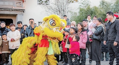 文旅更加深度融合,烘托出濃濃年味?!凹獣r(shí)到,鳴晨鐘,開(kāi)城!”伴著清越的晨鐘聲,濟(jì)寧曲阜明故城大門徐徐打開(kāi)。城門內(nèi),牌坊巍然、磚青瓦黃、古樹(shù)參天,孔府、孔廟門前,紅燈籠高高掛起。紛至沓來(lái)的腳步,熙熙攘攘的人群,喚醒了古城,也點(diǎn)燃了濃濃的年味?!耙獛Ш⒆觽兘邮芪幕眨惺苣旯?jié)氛圍。”來(lái)自河北滄州的游客劉東帶著孩子在“三孔”開(kāi)啟了文化之旅。