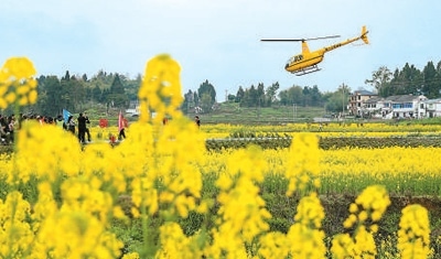 4月以來,四川省崇州市的30萬畝油菜花競相綻放,從空中俯瞰,將會(huì)帶來不一樣的感受。為此,當(dāng)?shù)亻_通了“低空航線”,游客在半小時(shí)的低空飛行中,不僅可以俯瞰一望無際的油菜花海,還能欣賞附近錯(cuò)落有致的民居庭院。此外,當(dāng)?shù)剡€推出花海跳傘項(xiàng)目,將極限運(yùn)動(dòng)融入賞花,帶給游客別樣的體驗(yàn)。