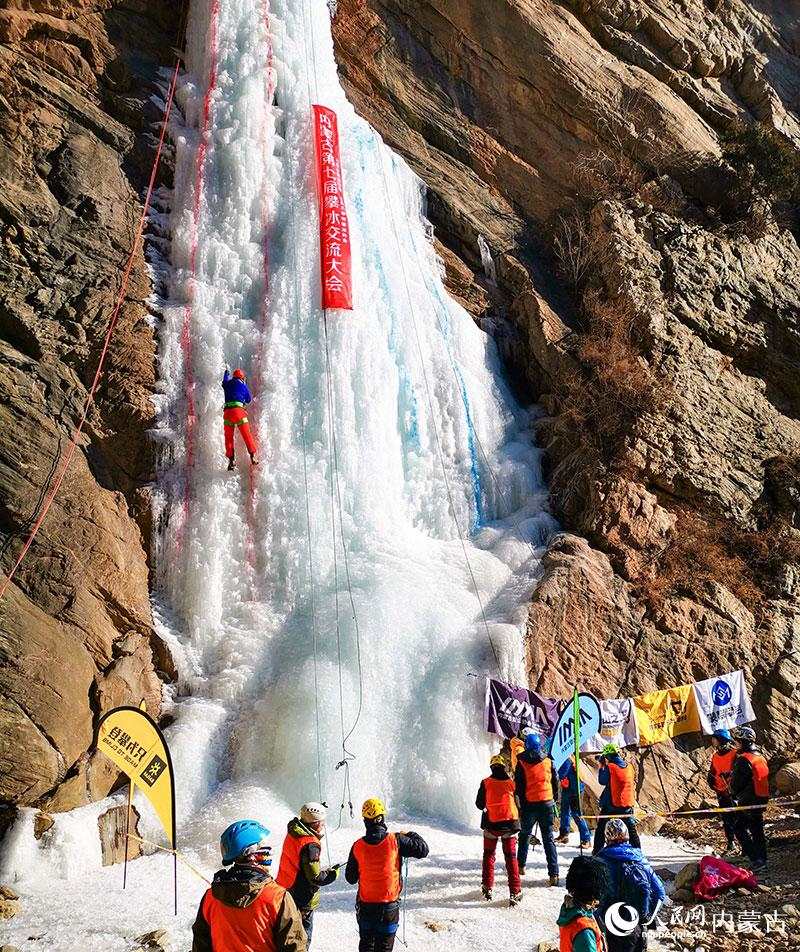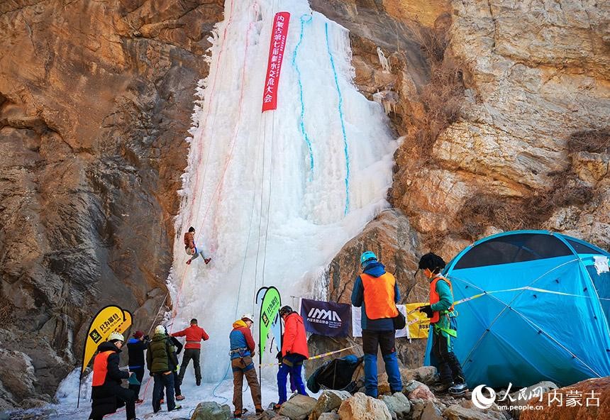 1月16日,由內(nèi)蒙古登山協(xié)會(huì)、內(nèi)蒙古攀巖攀冰協(xié)會(huì)聯(lián)合舉辦的內(nèi)蒙古第七屆攀冰交流大會(huì)在包頭市土默特右旗舉行,來自內(nèi)蒙古各地的攀冰愛好者和戶外運(yùn)動(dòng)愛好者在晶瑩剔透的冰瀑上挑戰(zhàn)自我,感受極限運(yùn)動(dòng)帶來的樂趣。(丁根厚)