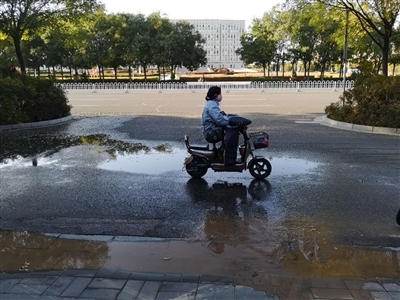 河套公園北出口冒清水 咋回事?