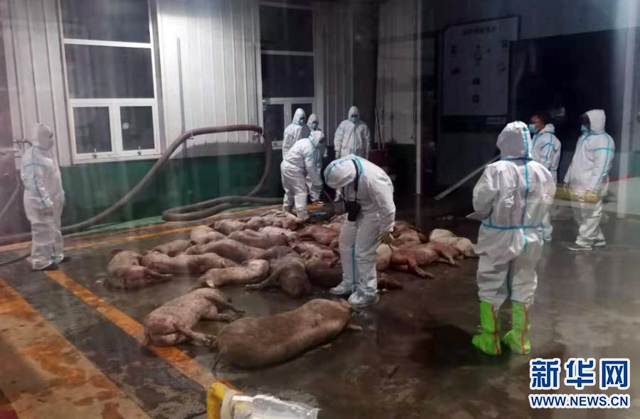 3月21日,工作人員在達(dá)拉特旗病死畜無(wú)害化處理中心對(duì)收集的死豬進(jìn)行無(wú)害化處理。新華社發(fā)