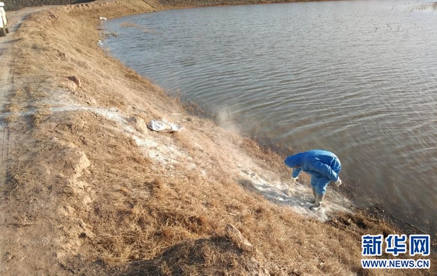 3月21日,達(dá)拉特旗疫控人員對(duì)黃河國(guó)堤內(nèi)死豬打撈地進(jìn)行消毒。新華社發(fā)