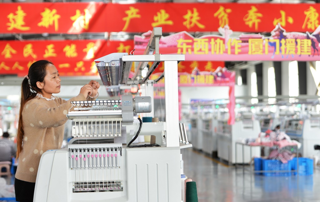 近年來,在東西部扶貧協(xié)作機制下,福建省廈門市幫助甘肅省臨夏回族自治州引進服裝鞋帽、戶外用品、文化旅游、農(nóng)產(chǎn)品深加工等企業(yè),吸納當?shù)剞r(nóng)民就地就近就業(yè)。新華社發(fā)(史有東 攝)