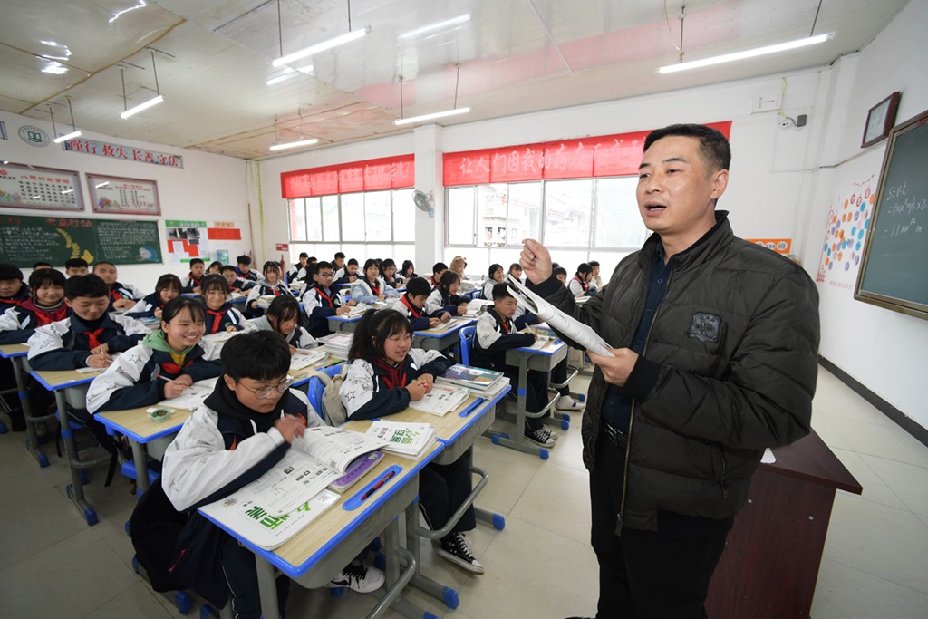 在貴州省黔東南苗族侗族自治州劍河縣第三中學,來自浙江省杭州市淳安縣的對口幫扶教師蔡新民在給學生上物理課(2020年11月26日攝)。