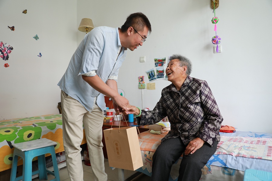 ??道夏旯⑹且凰t(yī)、養(yǎng)、教三位一體的“AAAAA”級養(yǎng)老機構,現(xiàn)有工作人員75名。崔玉蘭老人今年86歲,是一位小學退休老師,2016年來到??道夏旯ⅰ!?年了,這里的工作人員照顧得特別好。我平時愛畫畫、彈琴,還跟其他老人聊天,心情也舒暢了。”崔玉蘭老人笑著說?!案兄x企業(yè)為這些和藹可親的老人們獻愛心?!崩钣懒帘磉_謝意。