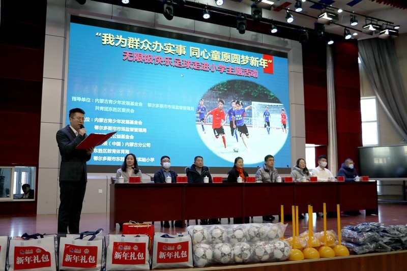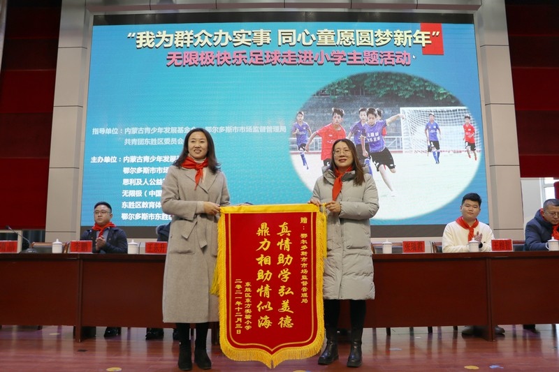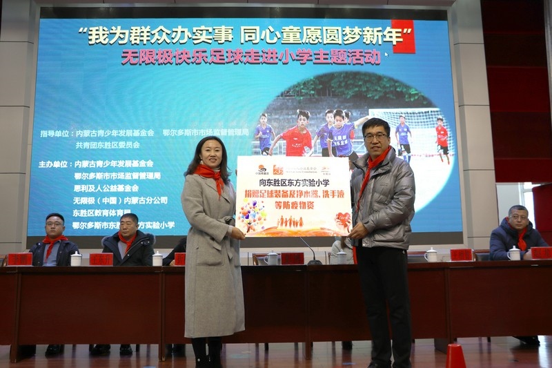北疆新聞網(wǎng)、北疆新聞APP、北疆云消息 12月3日,思利及人公益基金會、無限極(中國)內(nèi)蒙古分公司攜手內(nèi)蒙古青少年發(fā)展基金會、鄂爾多斯市市場監(jiān)督管理局、共青團(tuán)東勝區(qū)委員會、東勝區(qū)教育體育局、無限極內(nèi)蒙古志愿者協(xié)會走進(jìn)內(nèi)蒙古鄂爾多斯市東勝區(qū)東方實(shí)驗(yàn)小學(xué),開展“我為群眾辦實(shí)事 同心童愿圓夢新年”無限極快樂足球慰問公益活動。為學(xué)校的孩子們送上了一份特別的禮物,由“無限極快樂足球”公益項(xiàng)目提供的足球、球服、球鞋、繞桿、訓(xùn)練桶等足球裝備和訓(xùn)練器材。孩子們在收到捐贈后,露出開心燦爛的笑容。