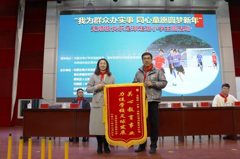 鄂爾多斯市市場監(jiān)督管理局副局長折桂蘭在公益活動上致辭,希望同學(xué)們不要單一地關(guān)注學(xué)習(xí),而要德、智、體、美全面發(fā)展,提升綜合能力,同時用優(yōu)異的成績來回報(bào)每一個愛心人士的無私奉獻(xiàn)與幫助。也希望同學(xué)們分配好時間,能夠熱愛足球,熱愛自已感興趣的運(yùn)動、愛好,這會讓生活更加多姿多彩,也希望同學(xué)們今后能多方面為國家貢獻(xiàn)自己的力量,成為各行業(yè)里的優(yōu)秀人才。