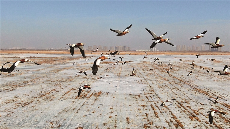 每年3—4月份,大批候鳥(niǎo)從南方來(lái)到鄂爾多斯市境內(nèi)黃河濕地上,之后繼續(xù)向北遷飛。近幾年,隨著生態(tài)環(huán)境不斷改善,候鳥(niǎo)數(shù)量與種類逐年增加。圖為達(dá)拉特旗境內(nèi),遷徙候鳥(niǎo)正在棲息覓食。(楊耀中)