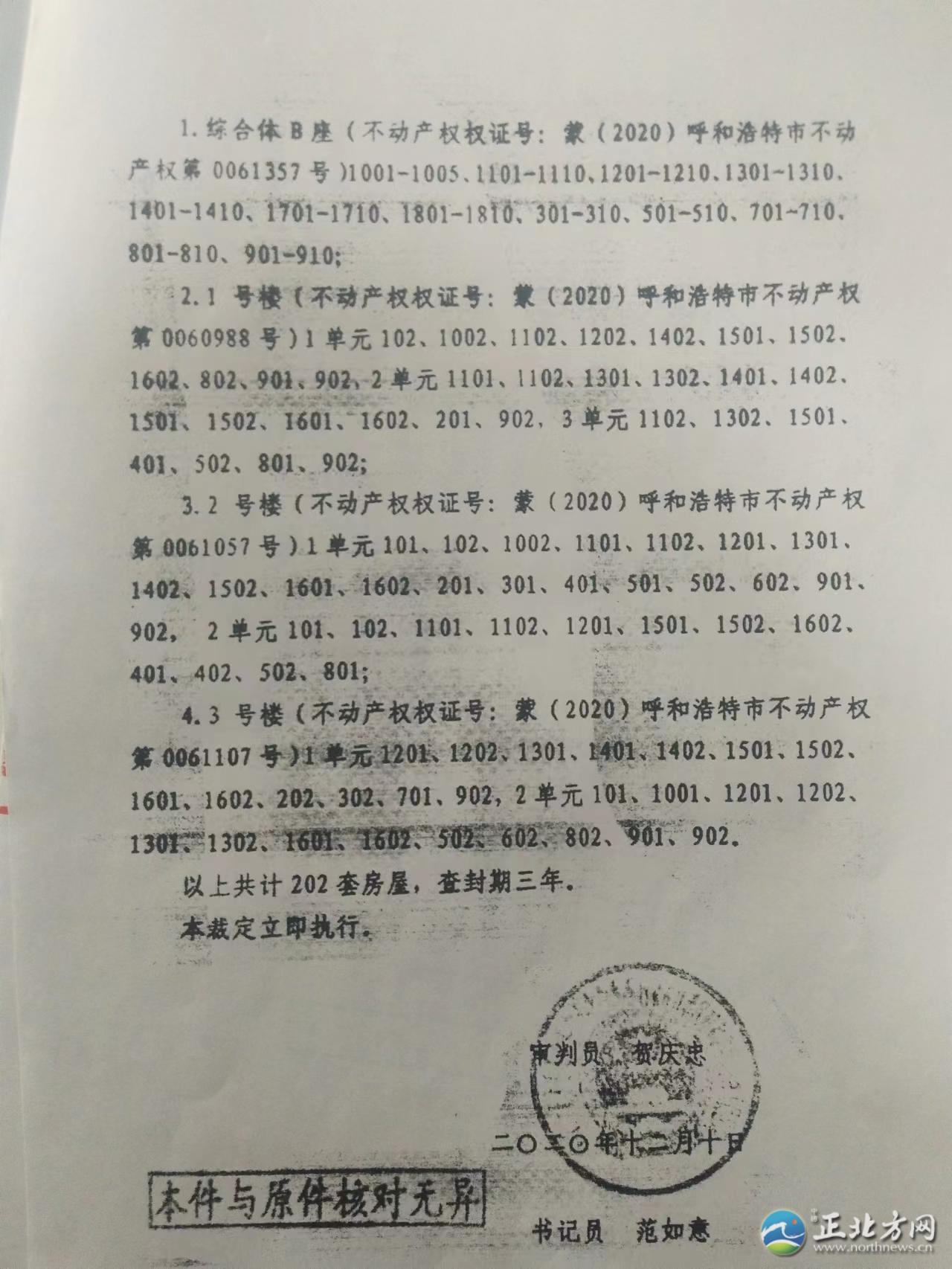 記者從上國名都部分業(yè)主提供的法院執(zhí)行裁定書上了解到,僅中國長(zhǎng)城資產(chǎn)管理股份有限公司內(nèi)蒙古自治區(qū)分公司一家申請(qǐng)執(zhí)行人就申請(qǐng)法院查封了上國名都住宅樓80多套房產(chǎn)。其他債權(quán)人又通過多家法院查封了上國名都小區(qū)60多套住宅。目前,上國名都216套住宅有140多套被查封。