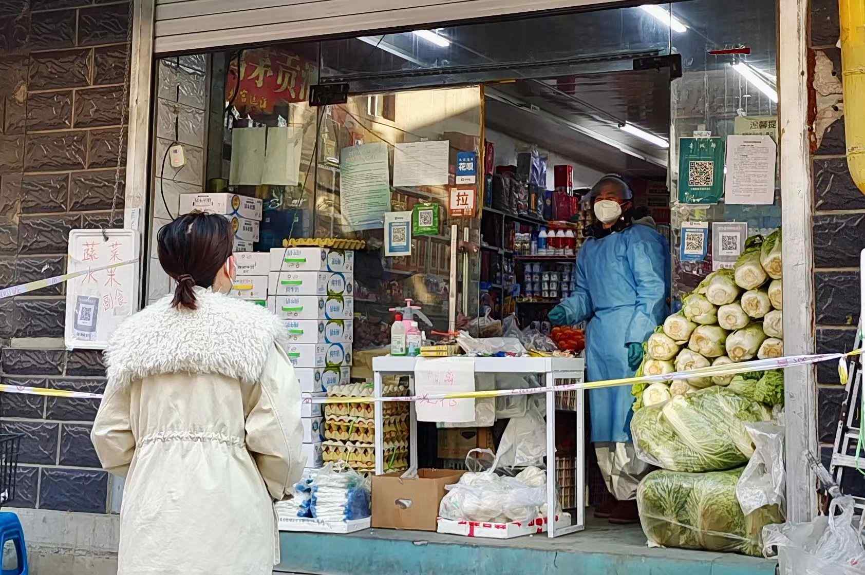 市民們不扎堆不聚集,間隔一米有序購(gòu)買(mǎi)。