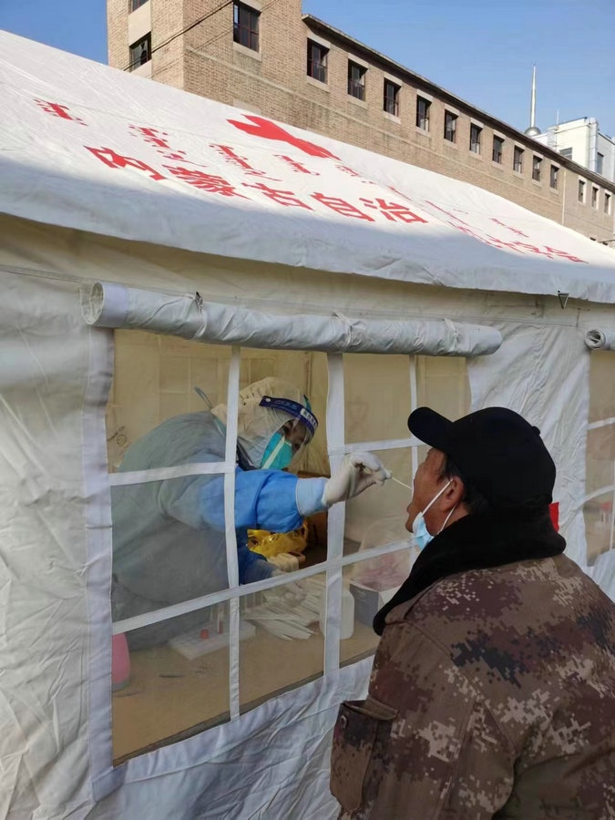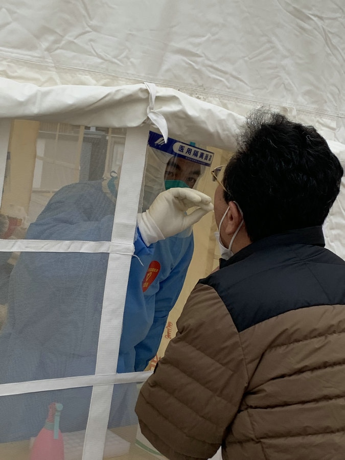 “我加入團(tuán)隊的時候,小區(qū)正好出現(xiàn)了陽性感染者,這個時期是最困難的。我就想,既然選擇了做這個事,就要義無反顧?!睆埿∮抡f,“那會兒都是前一天晚上才通知第二天核酸要怎么采集,我們就當(dāng)晚商量第二天在哪兒采集核酸。因為當(dāng)初還沒有搭帳篷,為了快速采集,有時還要增加一組核酸采樣人員,我們還要考慮在哪選址。其實剛開始,真的是特別困難。”