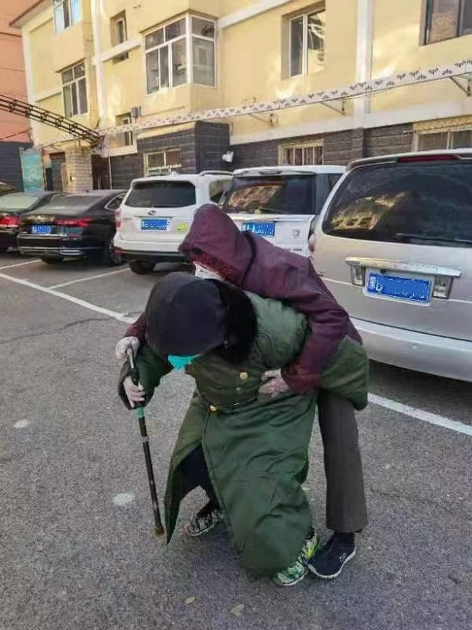 “還有一個老太太,剛做完手術(shù)時間不長,走路很慢,我就過去背上老人家去采集核酸。”張偉說,“不光張書府老人,我現(xiàn)在照顧著好幾個老人,都給他們留了電話,這些老人想吃什么菜了,會寫個單子聯(lián)系我,我會去給他們買回來。在這個小區(qū)里,有太多這樣的老人了,我們會盡自己所能,幫一個是一個。”