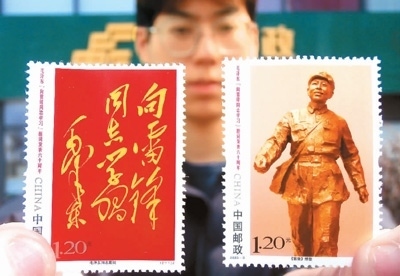 3月5日,中國(guó)郵政發(fā)行了一套名為《毛澤東“向雷鋒同志學(xué)習(xí)”題詞發(fā)表六十周年》的紀(jì)念郵票,其中一枚以金色雷鋒塑像為主體圖案。方寸間,雷鋒昂首挺胸,面含微笑,仿佛正闊步走在春風(fēng)中。他的神情歡快溫暖,令人動(dòng)容,讓人懷念。