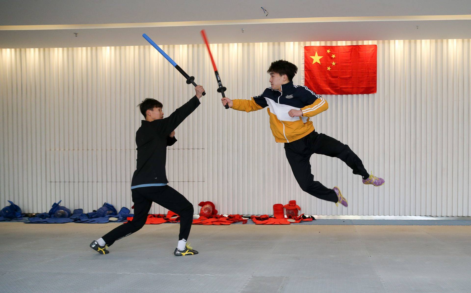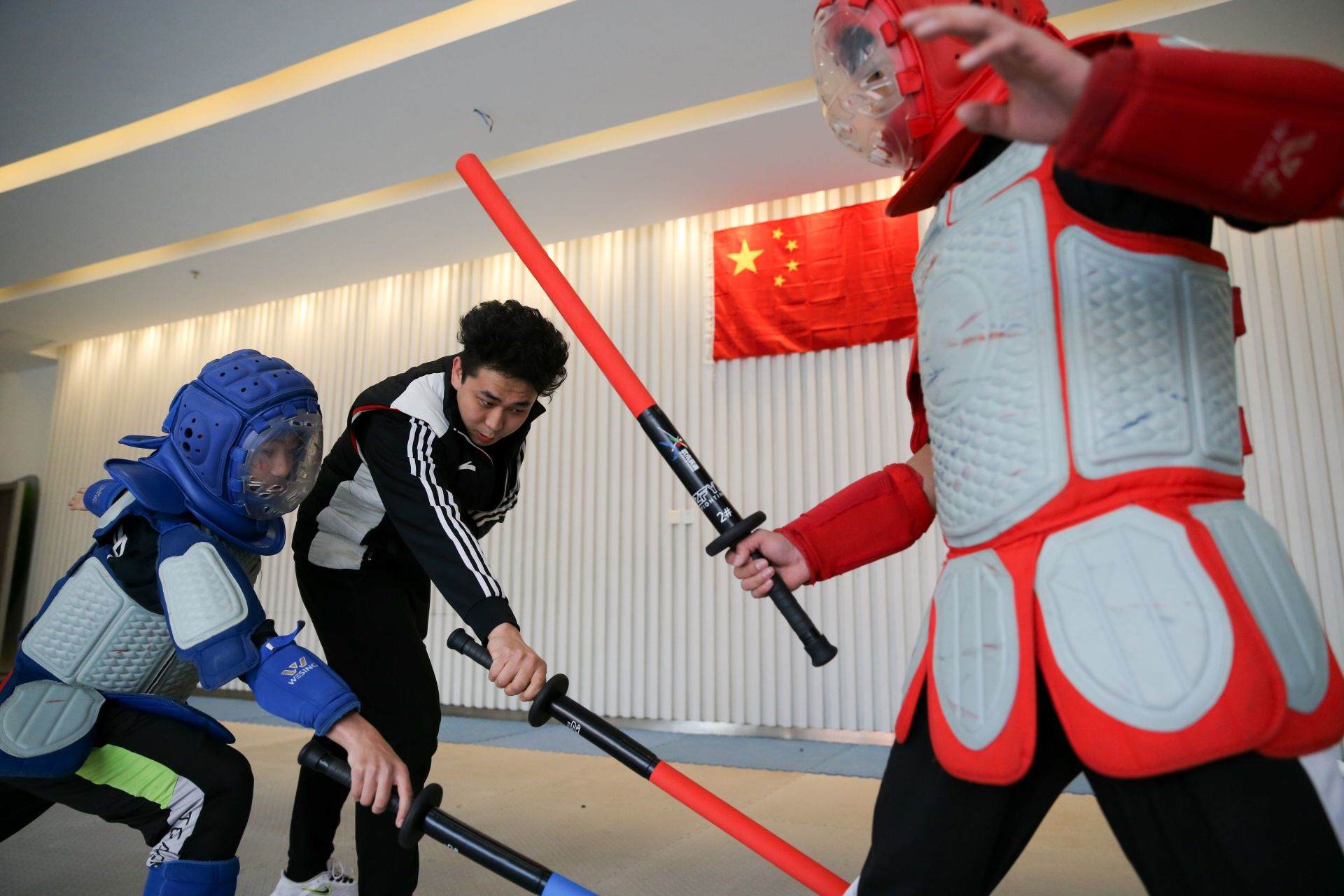 隊(duì)員手持一柄海綿包裹的短劍,時(shí)而閃躲騰挪,時(shí)而沖刺進(jìn)攻,動(dòng)作行云流水。一招一式間盡顯力量和速度之美,相互對(duì)抗擊打時(shí)發(fā)出“啪啪”的聲響更是令人熱血沸騰……如果說(shuō)哪一項(xiàng)運(yùn)動(dòng)能夠滿足人們對(duì)俠客的終極幻想,非武術(shù)兵道莫屬。3月21日,為備戰(zhàn)全國(guó)武術(shù)兵道錦標(biāo)賽,內(nèi)蒙古唯一一支武術(shù)兵道隊(duì)在呼和浩特市體育運(yùn)動(dòng)學(xué)校展開(kāi)訓(xùn)練。