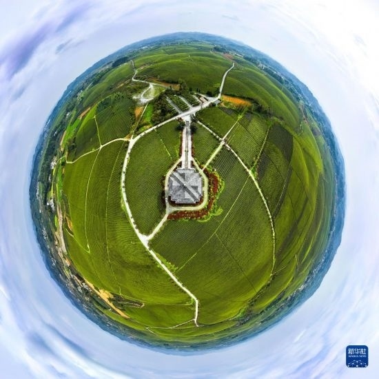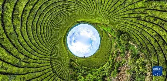 4月4日拍攝的遵義市湄潭縣永興鎮(zhèn)“萬(wàn)畝茶海”(無(wú)人機(jī)全景拼接照片)。