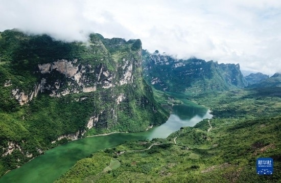 貴州省北盤(pán)江大峽谷國(guó)家濕地公園風(fēng)貌(2018年8月7日攝,無(wú)人機(jī)照片)。