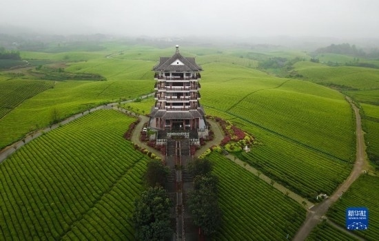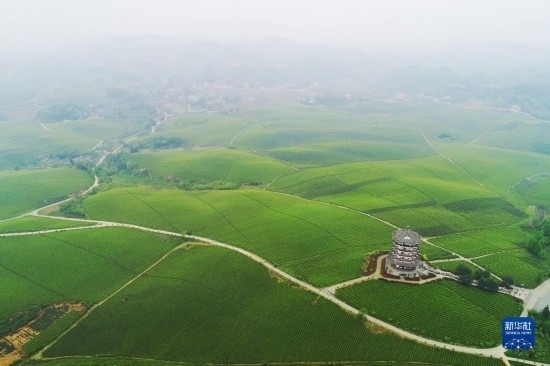 2021年4月12日拍攝的貴州省湄潭縣的“萬(wàn)畝茶?!憋L(fēng)光(無(wú)人機(jī)照片)。