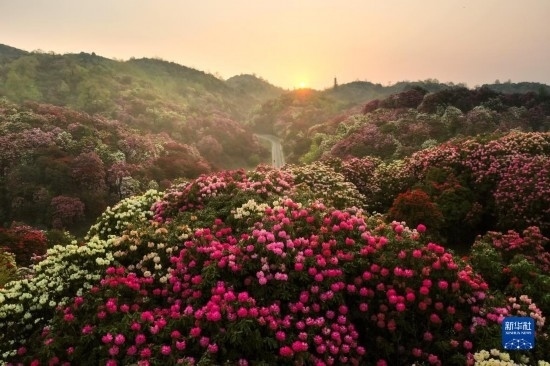這是連片的百里杜鵑(無(wú)人機(jī)照片,2021年3月30日攝)。