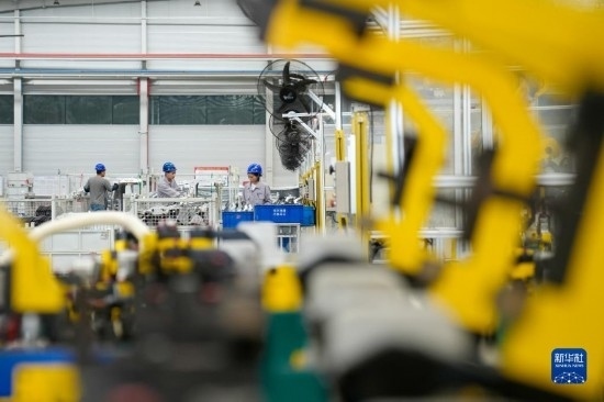 5月4日,在浙江省湖州市長興經(jīng)濟(jì)技術(shù)開發(fā)區(qū)一家汽車部件有限公司,工人生產(chǎn)新能源汽車配件。