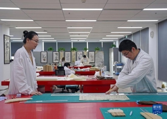 4月28日,在上海市檔案館的保護(hù)技術(shù)部,年輕的檔案修復(fù)師們?cè)诠ぷ髦小?/p>