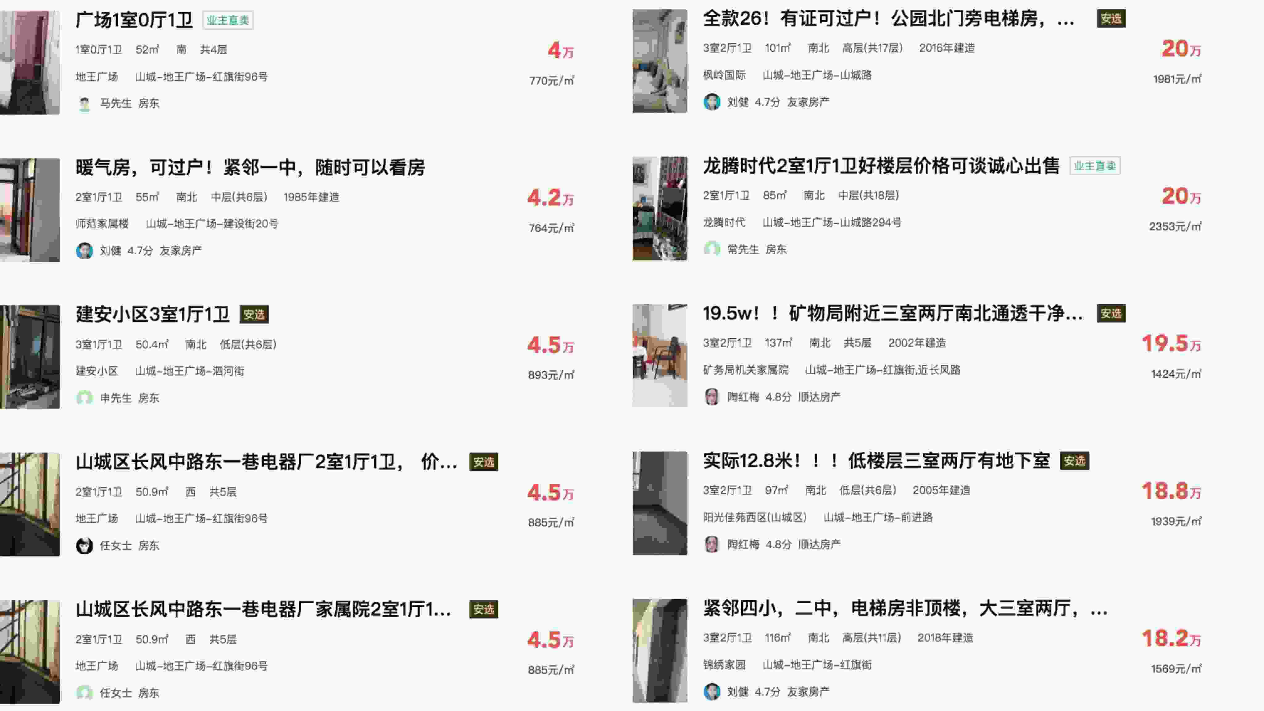 澎湃新聞從安居客平臺(tái)看到,鶴壁市低總價(jià)的房源確實(shí)存在,價(jià)格約在4萬(wàn)元/套,且多集中于鶴壁市山城區(qū)。