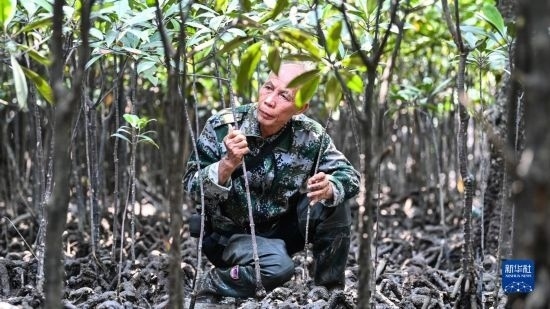今年68歲的莫積瑞老人,1993年開始在廣西山口紅樹林保護區(qū)管理處保護員崗位任職。2015年,莫積瑞退休,因為經(jīng)驗豐富被返聘,繼續(xù)從事紅樹林保護工作。