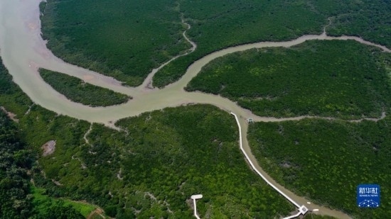 這是廣西山口紅樹林保護區(qū)一角(5月20日攝,無人機照片)。