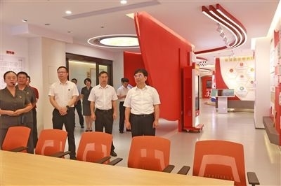 廣西高院黨組書記、院長(zhǎng)黃海龍(右一)在桂林中院黨建文化活動(dòng)中心調(diào)研。