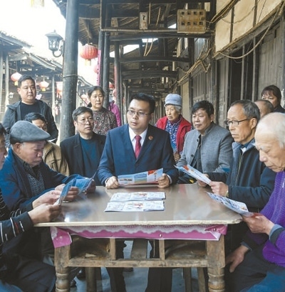 四川省廣安市廣安區(qū)人民檢察院干警向居民宣講法律知識,引導(dǎo)居民積極主動(dòng)參與保護(hù)生態(tài)環(huán)境等,為檢察公益訴訟提供有效線索。張國盛攝(人民視覺)