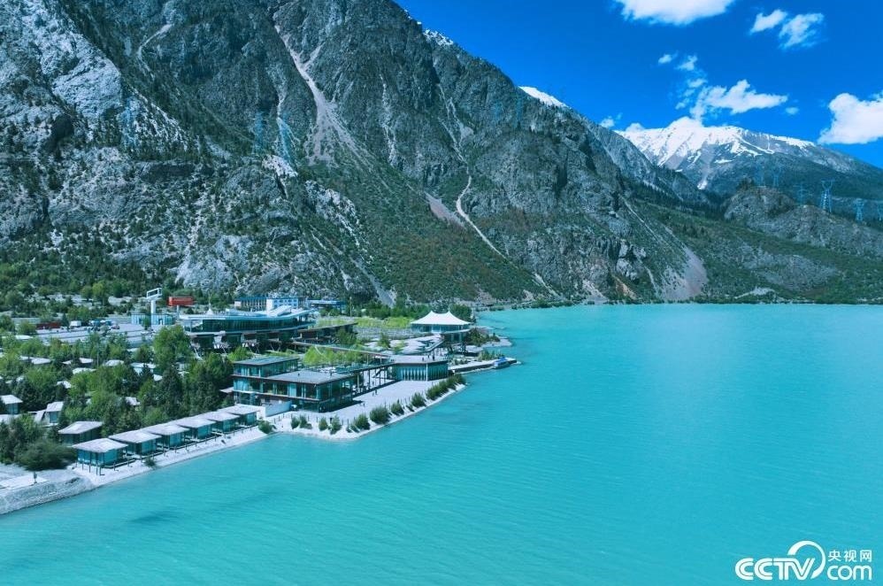 西藏昌都,然烏湖與雪山相映成景,湖面碧藍(lán),氣勢(shì)壯闊。