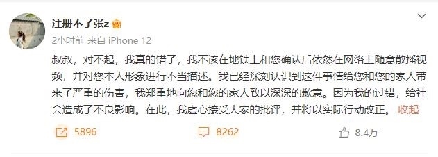 【8點見】曝光地鐵大叔當事女子發(fā)文道歉!