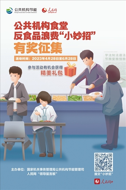 “推出小份菜”“飯菜稱重計價”“借助大數(shù)據(jù)合理備餐”……公共機構食堂反食品浪費,你還有什么“小妙招”?4月28日起,國家機關事務管理局公共機構節(jié)能管理司、人民網(wǎng)通過“領導留言板”聯(lián)合推出“公共機構食堂反食品浪費‘小妙招’有獎征集”活動,面向全社會征集黨政機關、學校、醫(yī)院等公共機構食堂反食品浪費的妙招、實招、硬招?;顒油瞥龊螅鞯厝罕姺e極建言獻策,一起來看看吧!