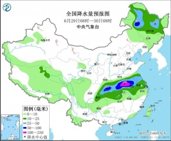 圖4 全國降水量預(yù)報(bào)圖(6月29日08時(shí)-30日08時(shí)) 圖自中央氣象臺(tái)網(wǎng)站