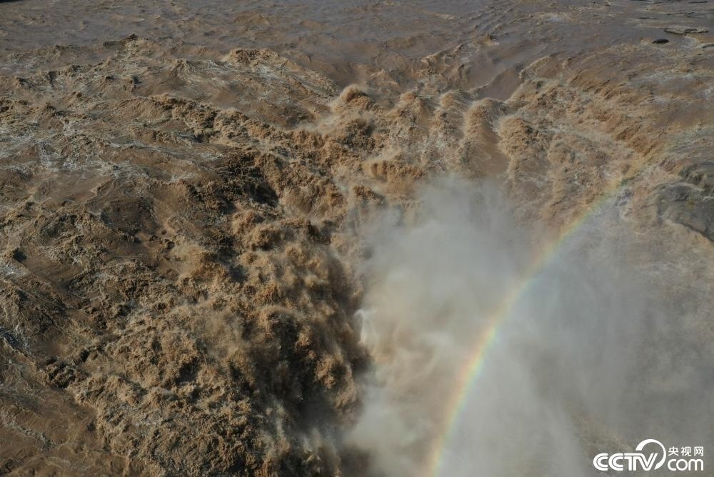 黃河壺口瀑布迎來(lái)秋汛,水流奔騰洶涌。
