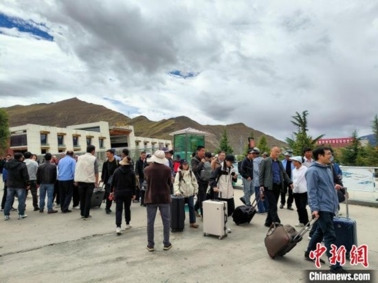 9月23日,乘坐高原復(fù)興號動車組列車的乘客抵達(dá)拉薩火車站。江飛波 攝