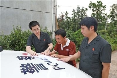 執(zhí)行干警與申請(qǐng)執(zhí)行人確認(rèn)界址。