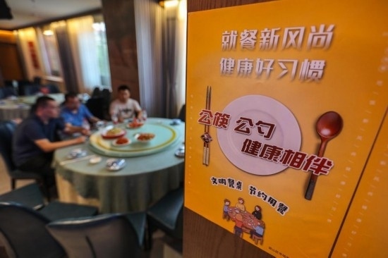 7月11日,記者在河北省邯鄲市邯山區(qū)一家飯店內(nèi)看到張貼的節(jié)儉用餐相關(guān)標語。新華社記者 趙鴻宇 攝