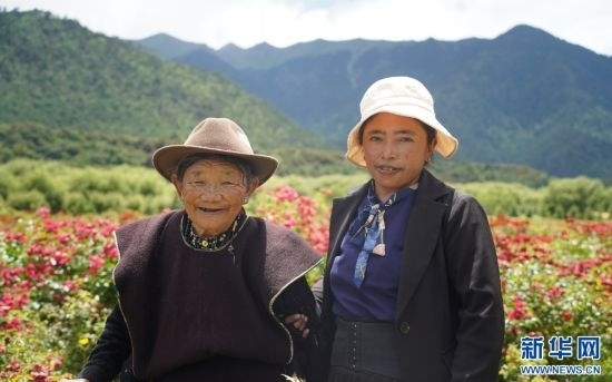 家在朵當(卡達)村的索朗卓瑪帶著自己81歲的母親前來賞花。她說,“村子里能開出這么漂亮的花,感到特別高興。帶媽媽來賞花,再拍拍照,很開心?!蹦概说男δ樤诨ǘ涞挠骋r下更加燦爛。
