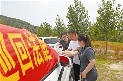 “現(xiàn)在開庭!”隨著審判長的一聲令下,這場以青山為背景、警車為審判臺、黃土地為審判場的“別樣”庭審正式落槌!近日,山東省莒南縣人民法院環(huán)境資源審判庭的法官冒著酷暑來到坊前鎮(zhèn)李家崖村,對被告人李某非法占用農(nóng)用地刑事附帶民事公益訴訟案件進行開庭宣判,并現(xiàn)場監(jiān)督被告人對破壞的土地進行徹底修復。