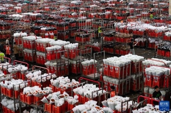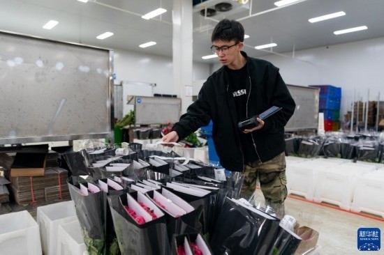每天,由花農(nóng)采摘的鮮花進(jìn)入分揀包裝車間,預(yù)冷、分級(jí)、包裝、入庫冷藏等工作井然有序地開展。經(jīng)過采后處理的鮮花一部分通過園區(qū)自有物流直接向客戶發(fā)貨,一部分則由專門的鮮花運(yùn)輸車運(yùn)往昆明國(guó)際花卉拍賣交易中心,開啟拍賣流程。