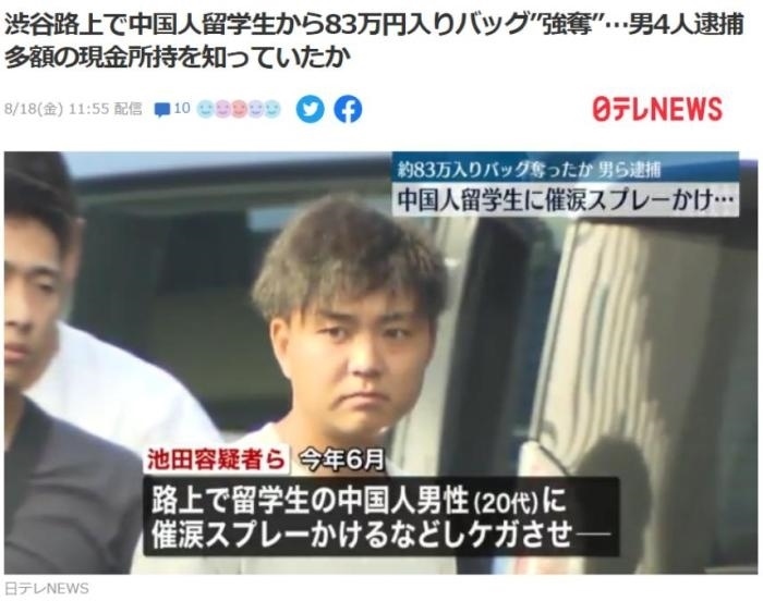 ·在東京搶劫中國(guó)留學(xué)生的嫌犯落網(wǎng),搶劫金額超4萬(wàn)元。
