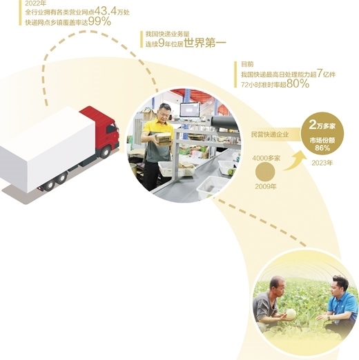 加入快遞網(wǎng)點后,賀英售賣的水果當天就能發(fā)貨,3天以內就能送達。“把快遞網(wǎng)建起來,才能讓電商更好地融入鄉(xiāng)村?!毙旆逭f。